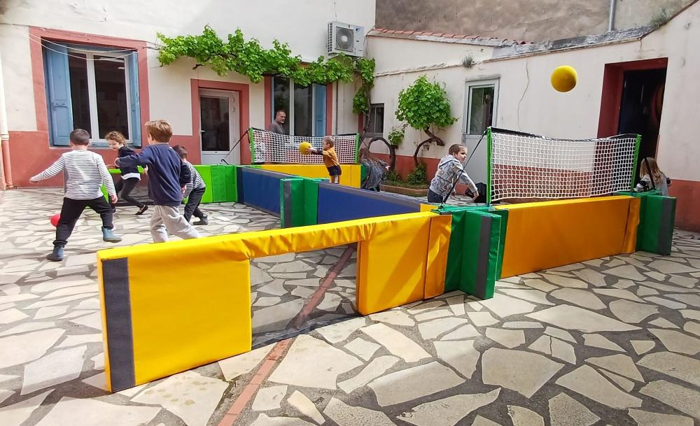 The Pitch'One Scol'Aires modular foam kits were designed by Sport Espaces Innovation SAS, which aims to promote mixed, intergenerational and inclusive sports activities, in consultation with school teachers. They are manufactured in Cournon d'Auvergne by MG Sport / ModuGame, a company that has specialised in foam sports equipment for over 20 years.