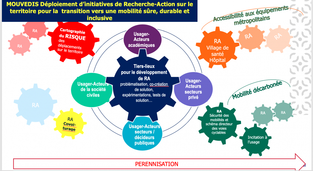 Deployed as part of Gustave Eiffel University's ExcellenceS (France 2030) program, MOUVEDIS is a regional Living Lab that brings together citizens, researchers, and local stakeholders to co-develop sustainable mobility solutions and improve travel safety. As third place for public innovation, it mobilizes collective intelligence through participatory action research and experimentation. It acts as an intermediary between partners, facilitates dialogue, and helps the community develop policies based on citizen experience and shared expertise.