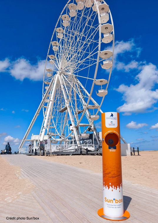 To address this public health issue, Sun'box has developed an innovative, simple, and effective solution: self-service sunscreen kiosks, autonomous, without electrical connection, and ready to use. Easy to install, they provide everyone with immediate access to quality sun protection, thus reducing the risks associated with prolonged exposure.
