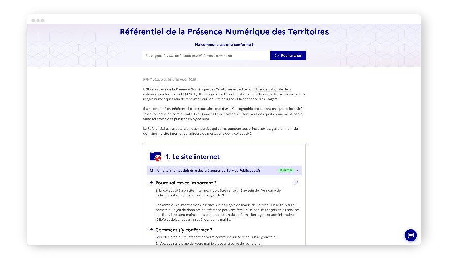 - analyser la situation de toutes les collectivités au regard de leur « présence numérique » à travers leur nom de domaine, site web et adresse de messagerie ;