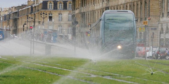 La solution EcoArrosage propose des alternatives à l'eau potable pour arroser les plateformes engazonnées du tramway de Bordeaux. Une équipe composée d'experts techniques, de représentants de la métropole et du Lab TBMouv! teste des solutions locales, durables et raisonnables. En complémentarité d'un plan de réduction qui a permis de diminuer les consommations en eau de 55% et d'une expérimentation de plantes moins gourmandes, EcoArrosage identifie des alternatives à l'utilisation de 76 860 m3 d'eau/an.