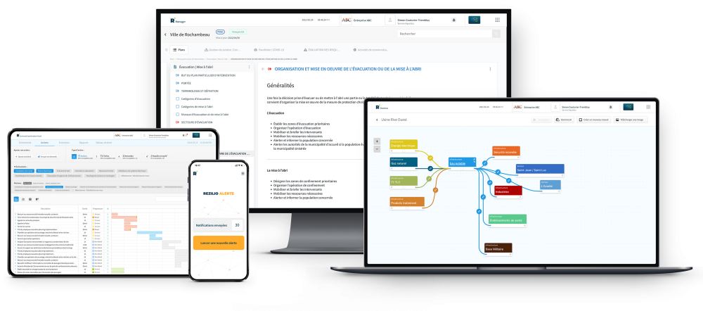 Notre produit Rezilio Gestionnaire de plans est une solution numérique avancée qui vous permet de gérer numériquement, en seule interface, tous vos plan, sites et événements, organisations, départements et services. Elle favorise la collaboration et l'interopérabilité entre les parties prenantes qui souhaitent être plus résilientes.