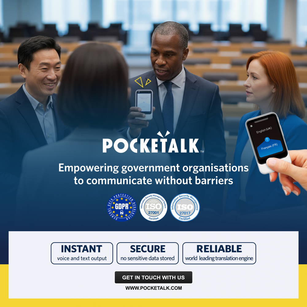 Pocketalk facilite la communication entre les agents publics et les citoyens, quelles que soient leurs langues. Grâce à la traduction instantanée et sécurisée, il renforce l'inclusion, la compréhension et la qualité du service public. Une innovation concrète au service des collectivités et du vivre-ensemble.
